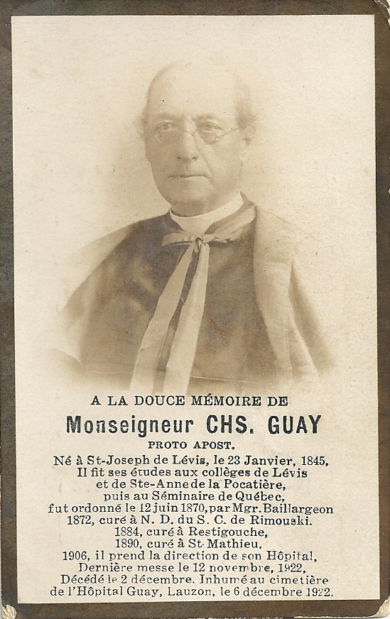 eu lieu en 1901. Ce fut un hôpital pour déshérités construit sous l'initiative de Mgr Charles Guay.